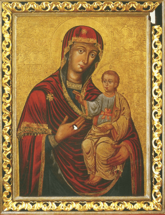 Кондак 10 Бажаючи розгорнути свій захист над усіма монастирями, Господь Бог поручив Пречистій Діві бути Матір’ю і Покровителькою монастирів, провадячи усіх дорогою спасіння, за що Богові співають: “Алилуя”.